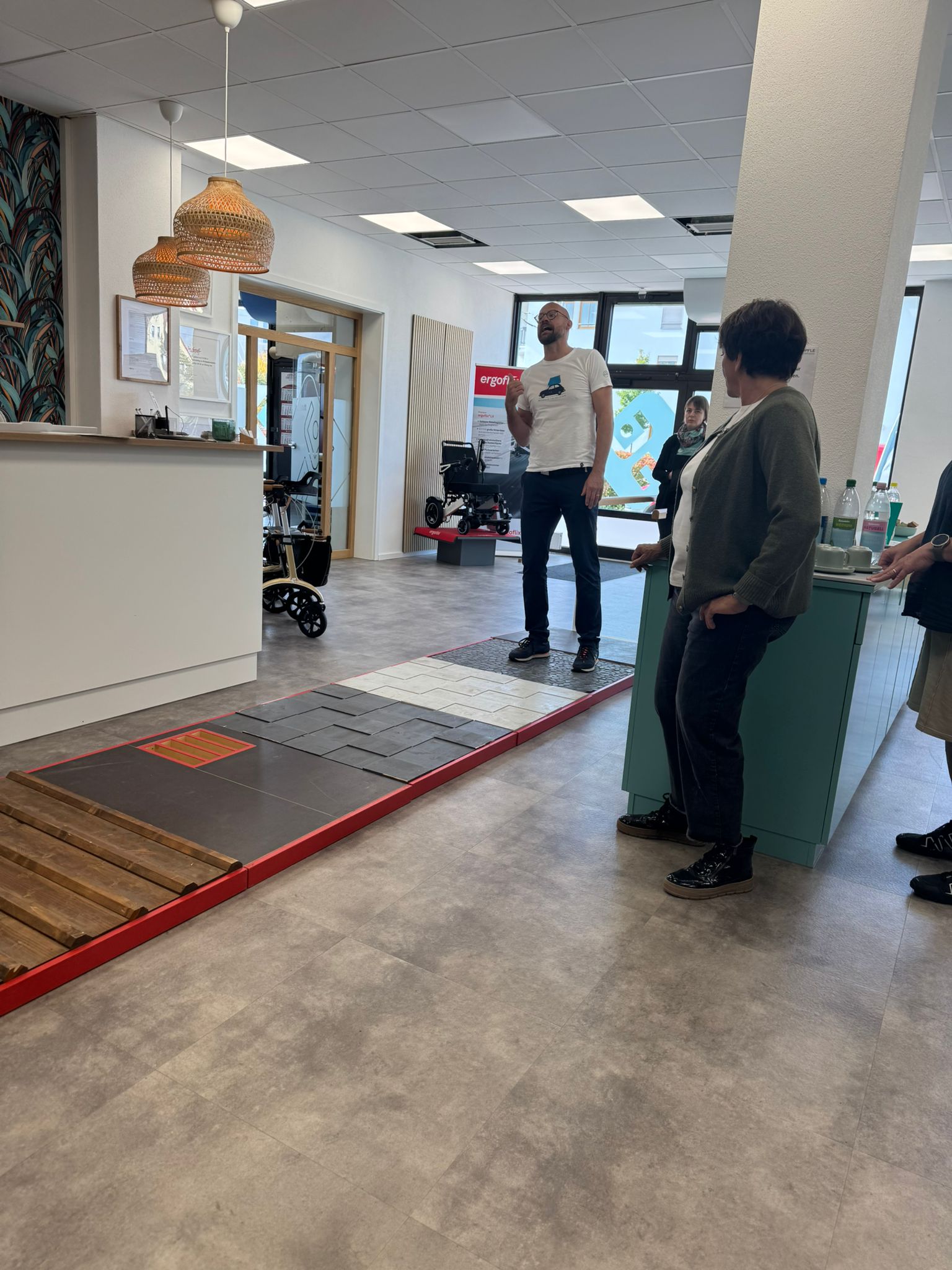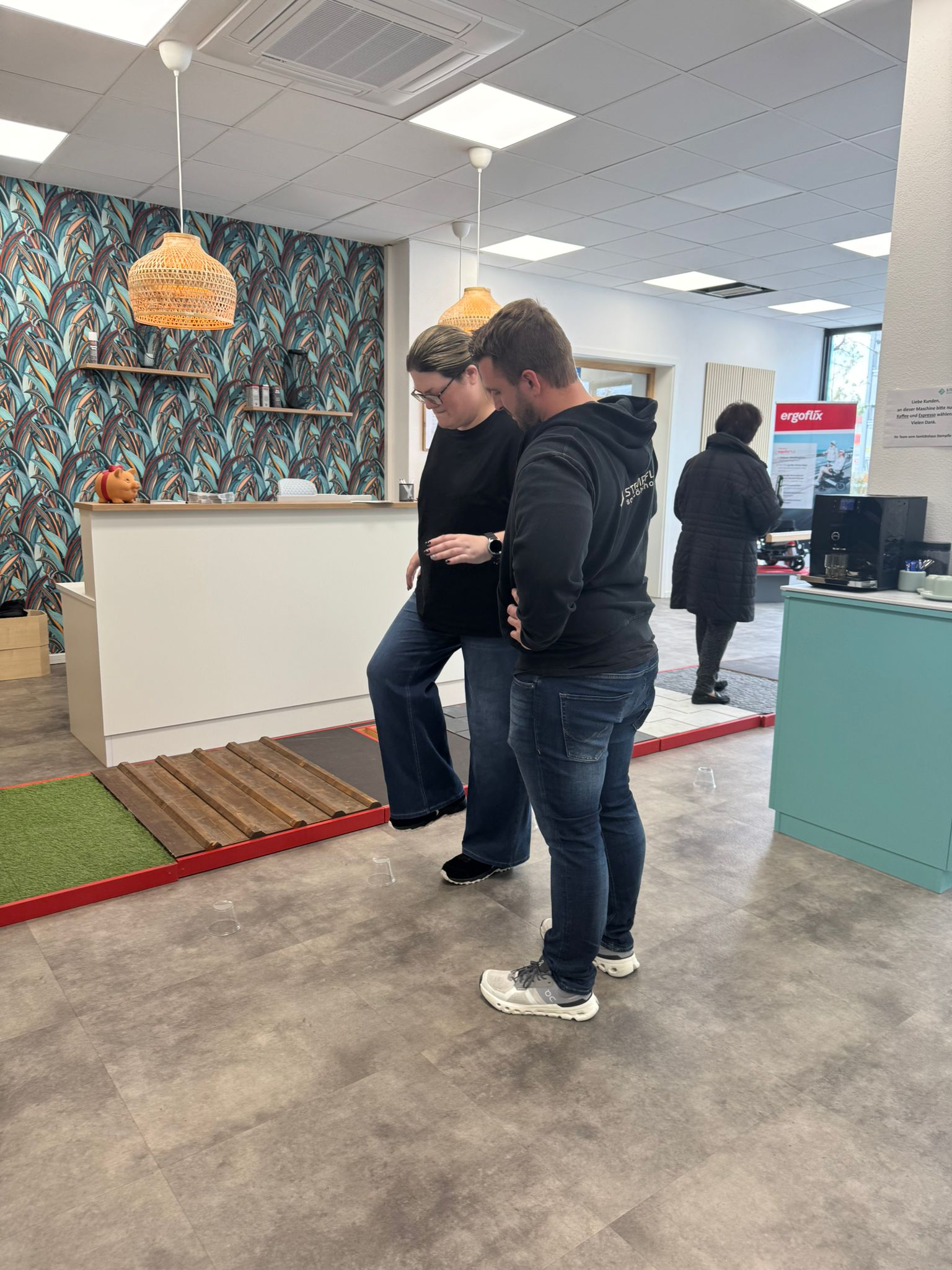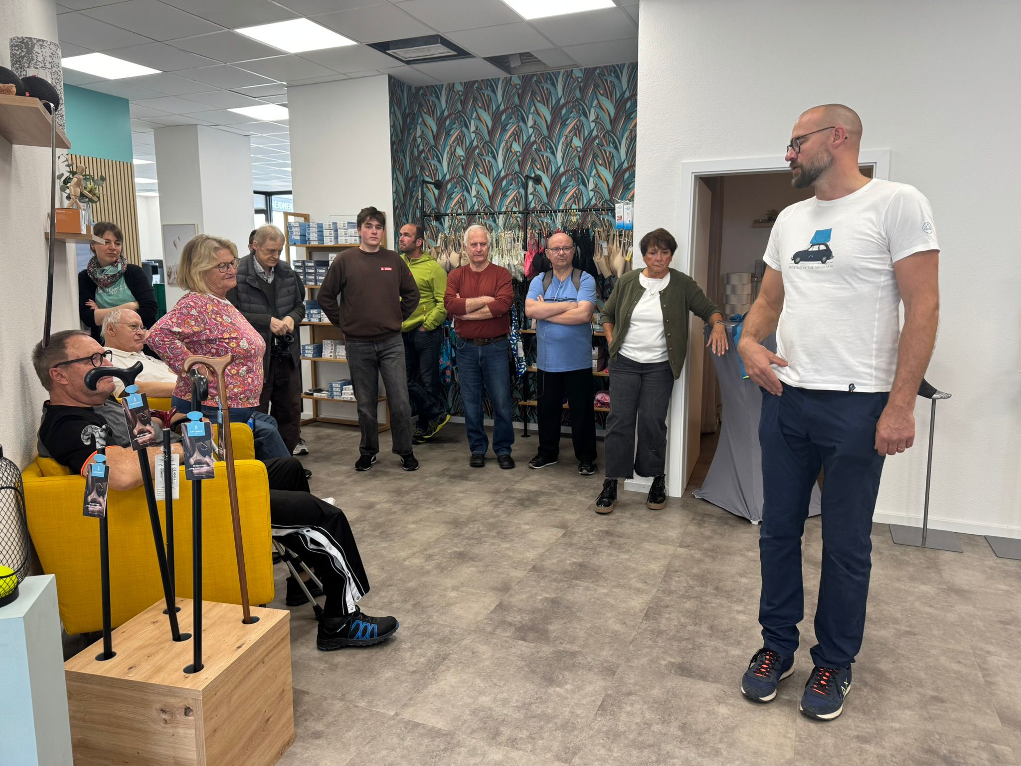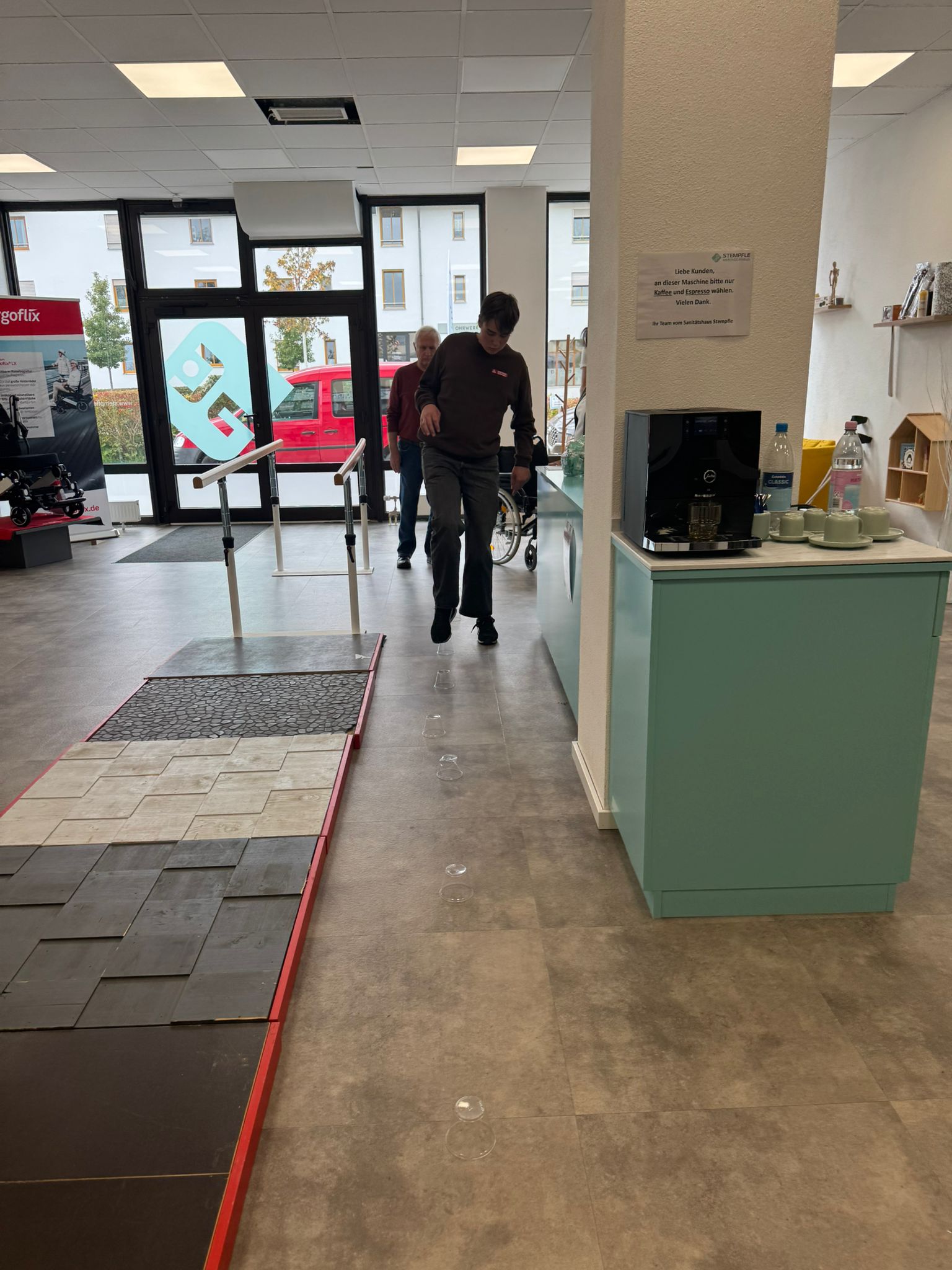 Zum Programm gehörte natürlich auch die Information über die Arbeit des Sanitätshauses Stempfle. Dazu war die Pause geeignet, aber auch der geforderte schnelle Lauf durch das gesamte Geschäft, inklusive der Werkstatt, wo noch halbfertige Schäfte und Orthesen zu sehen waren. Herumsitzen gab es nicht, nur wenn der Körper nach einer Pause rief.
