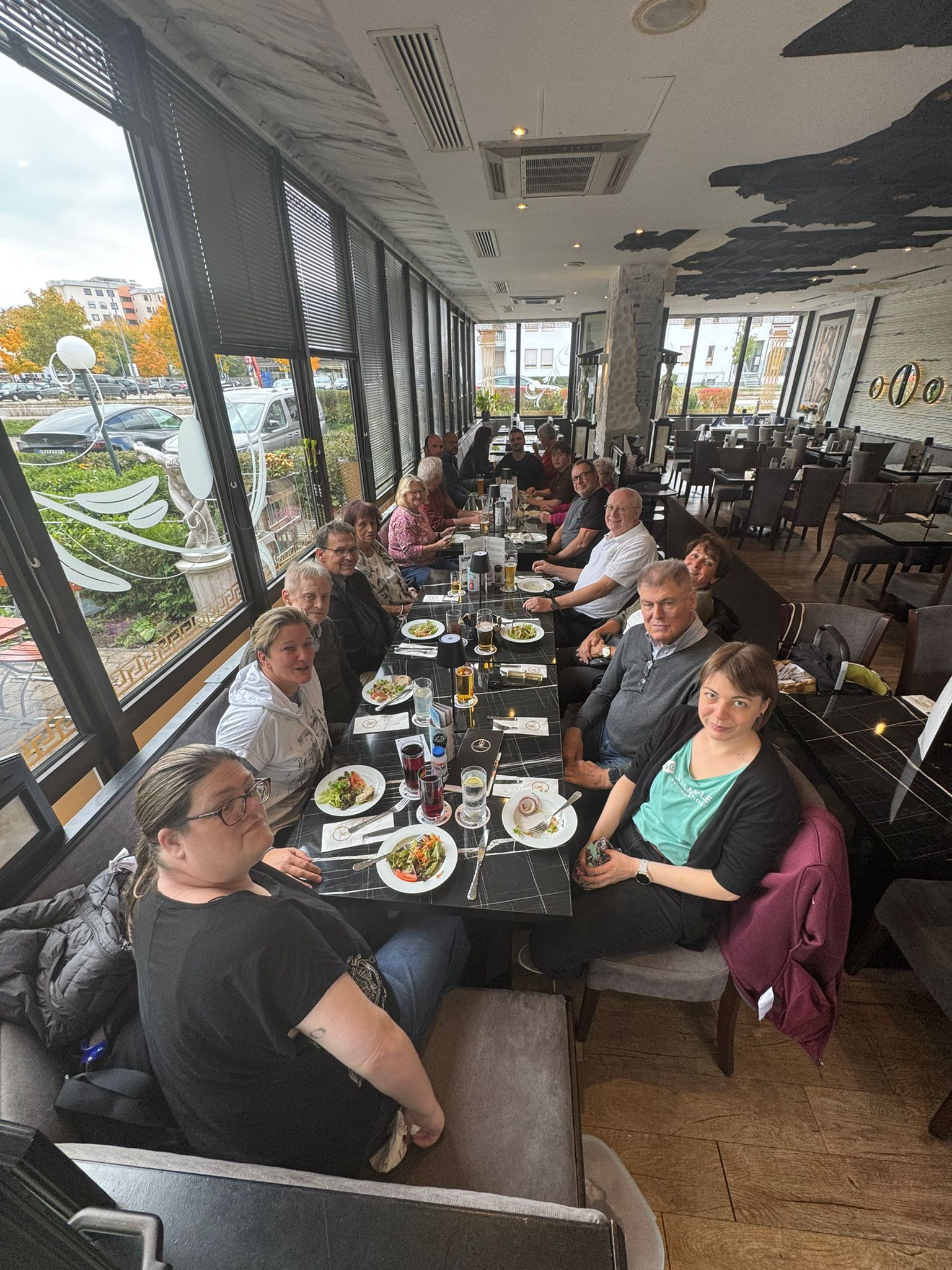 Biene bedankte sich im Namen der Teilnehmer mit was Süßem und einem guten Tropfen bei Martin, Alexander Stempfle, seinen Mitarbeiterinnen und Mitarbeiter und lud zum gemeinsamen Abschlussessen ins Restaurant Poseidon ein. Ein gemütlicher Ausklang eines lehrreichen und anstrengenden Tages. Und… ein herzlicher Dank an Biene für die aufwendige Organisation!